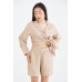 Розмір: XL (Оversize) Довжина виробу від пояса по зовнішньому шву: 44 см НО талії: 39-44 см (шорти на резинці) НО стегон: 62 см Висота передньої посадки: 32 см Висота задньої посадки: 43 см Колір: бежевий Рекомендації щодо догляду: - прання за 40°C - прасувати виріб за середньої температури - сушити в сушильній машині за низького температурного режиму (не вище 60°C) *Заборонено: відбілювати виріб. Не піддавати хімчистці!