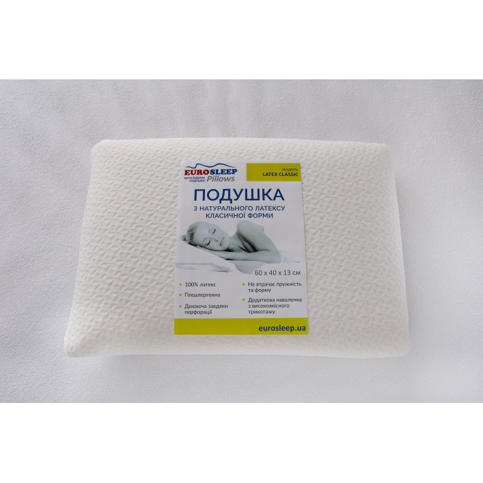 Подушка "LATEX CLASSIC" Мігрені і біль у шийному відділі хребта, нестабільність артеріального тиску, навіть зниження гостроти зору мало хто пов’язує з неправильним вибором подушки для сну. Однак, саме вона може стати п...